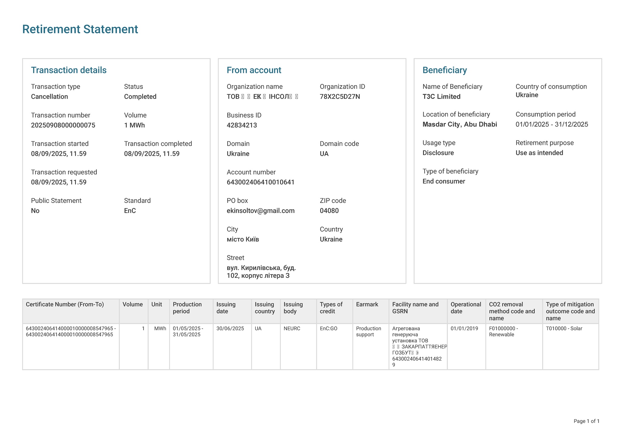 - Cancellation: To prevent double-counting, the certificate is canceled or retired after the energy has been delivered to a final customer.